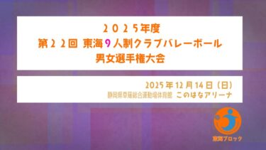 2025年度 第22回 東海6人制クラブバレーボール男女選手権大会 大会概要 日程 2025年12月14日(日) 会場 静岡県草薙総合運動場体育館 このはなアリーナ (住所:〒422-8007 〒静岡県静岡市駿河区聖一色 19-1 TEL:054-208-3121) 開催要項 開催要項(PDF) […]