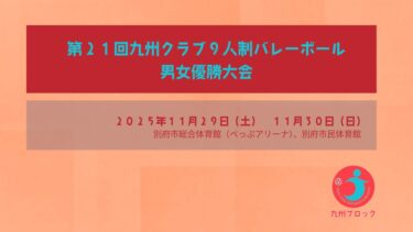 第21回九州クラブ9人制バレーボール男女優勝大会 大会概要 日程 2025年11月29日(土)~30日(日) 会場 別府市総合体育館(べっぷアリーナ)/ 別府市青山町8番37号(Tel:0977-21-2323) 別府市民体育館 / 別府市大字別府3016番地の1(Tel:0977-26-0535) […]